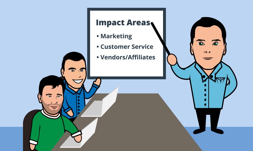 Ideas change as people brainstorm. This process is drawn out and time is wasted needlessly if you do this on an individual basis. Instead, break up your business into impact areas and their respective team members. When you gather everyone to discuss specific issues, you streamline the brainstorming and information distribution process.